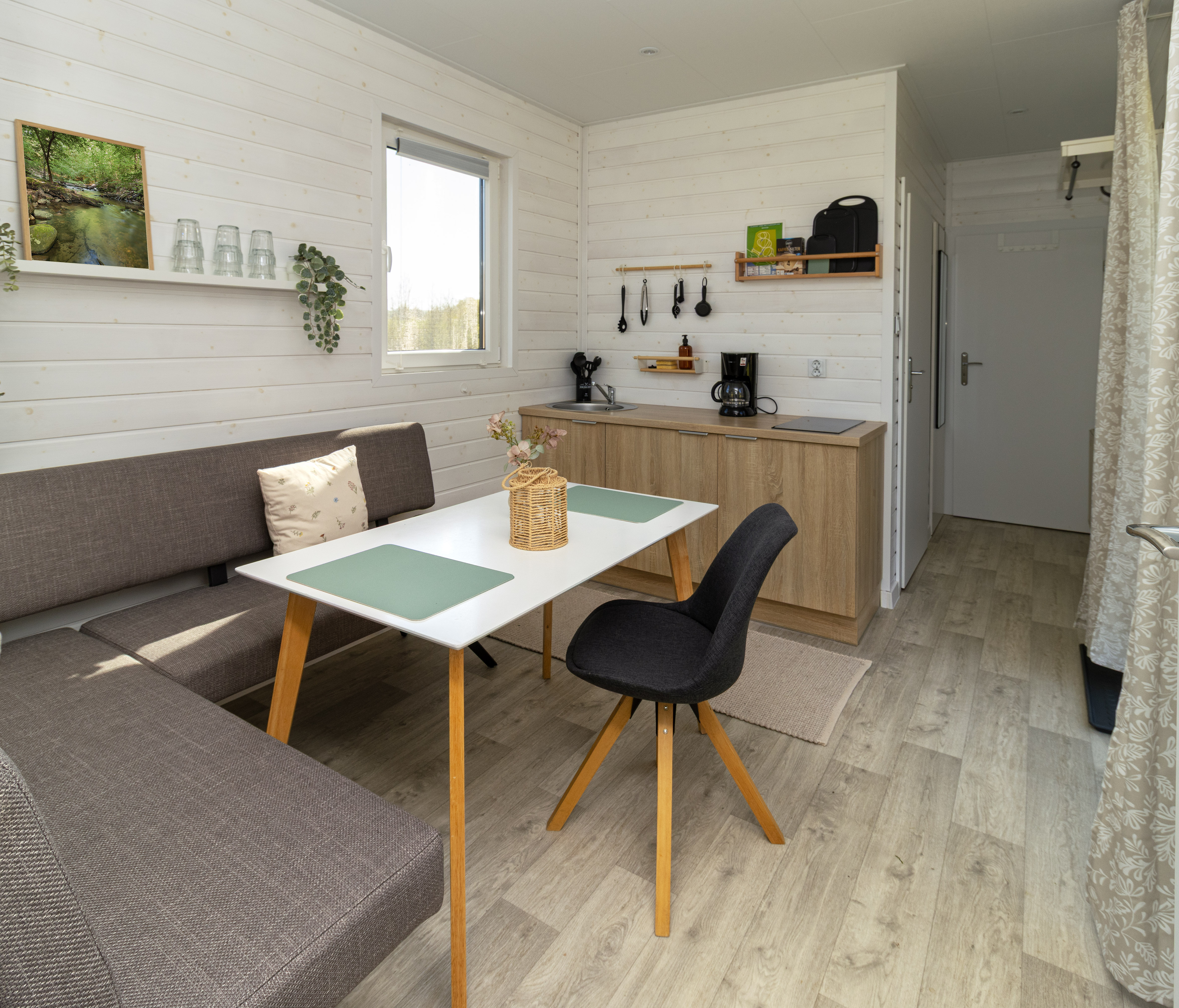 Unsere Tiny Houses bieten umfangreichen Komfort für 1–5 Personen. Dazu gehören DU/ WC und eine Küchenzeile zur alleinigen Nutzung.